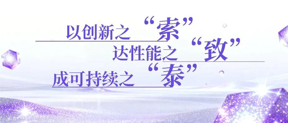 “索致泰” 诠释了公司通过高性能解决方案,以科学进步驱动更智能成果,助力中国特种材料行业可持续发展的品牌承诺,寓意“以创新之‘索’,达性能之‘致’,成可持续之‘泰’”。